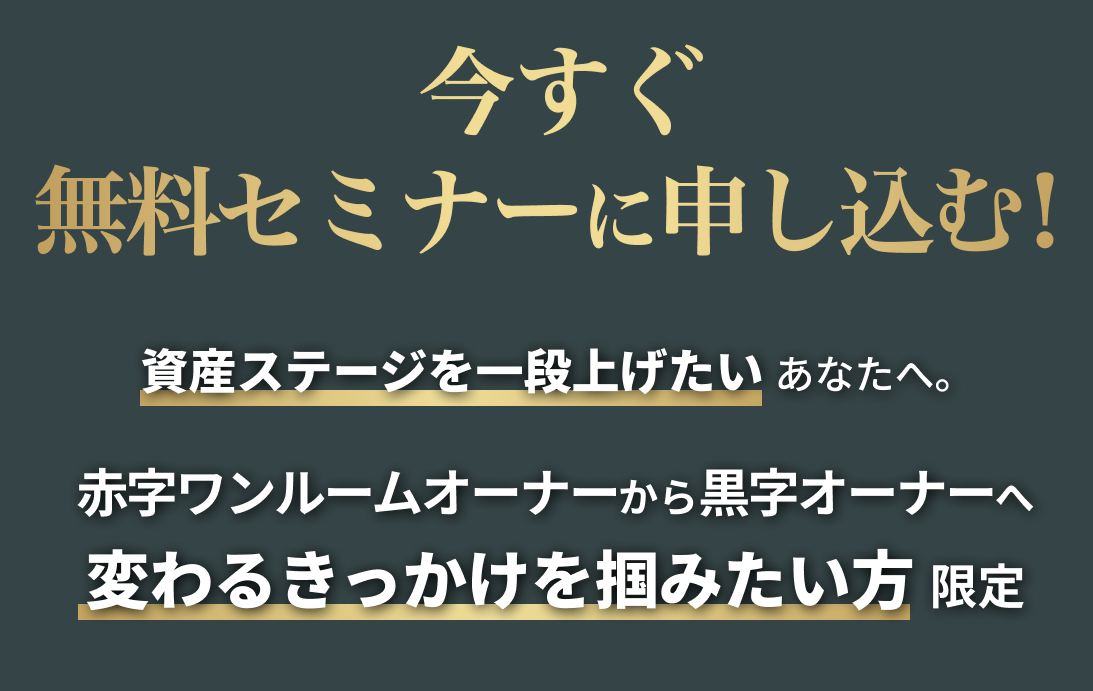 「赤字ワンルームに悩むオーナーの1人でした。友人からこのセミナーを紹介してもらい、出口戦略を立ててもらえて今では黒字化しています。」